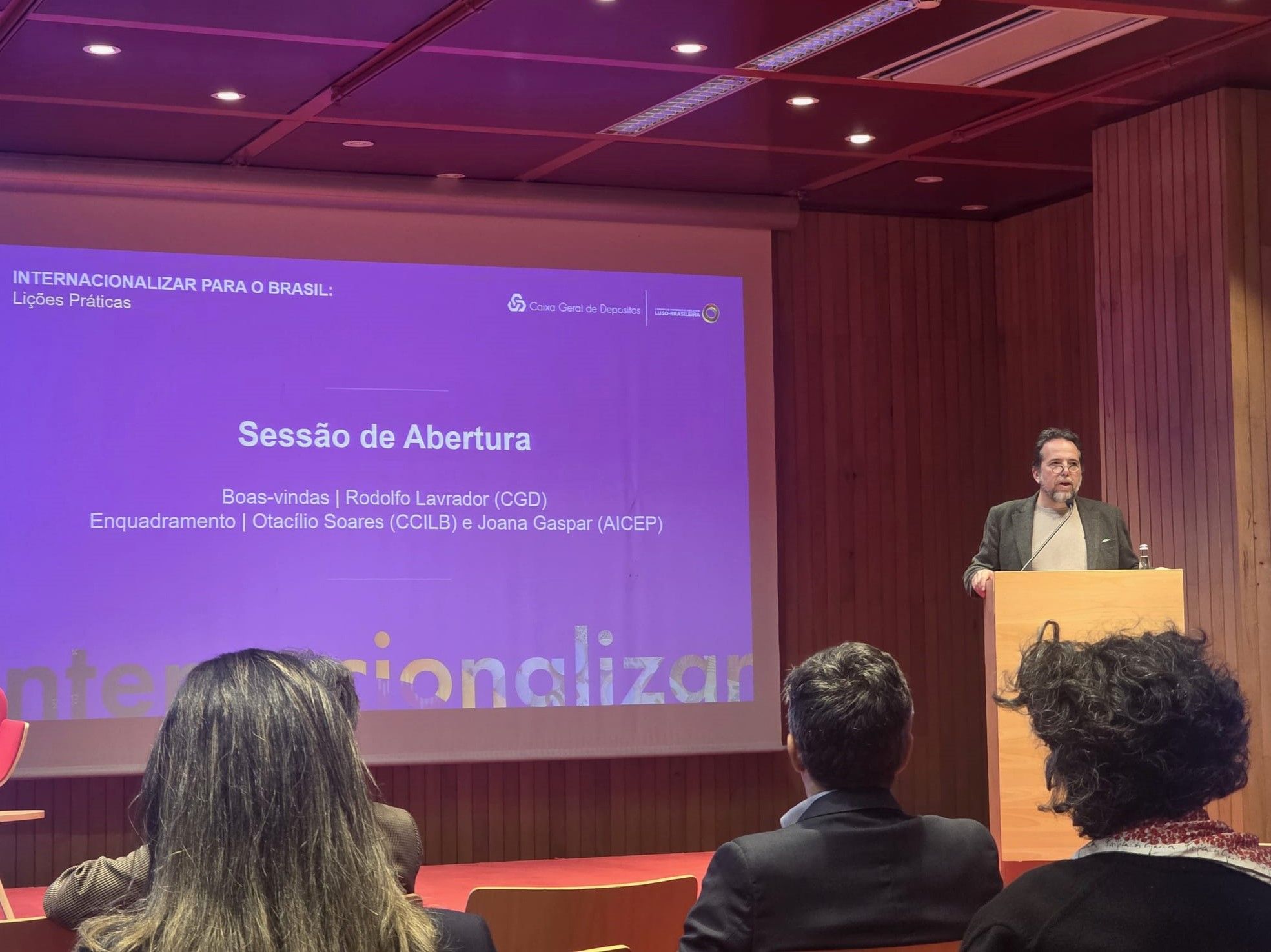 A sessão incluiu ainda, pelas 16h30, a apresentação de um estudo de caso sobre internacionalização para o Brasil, protagonizado por Gonçalo Rebelo de Almeida, do Grupo Vila Galé, que partilhou o percurso da empresa, os obstáculos enfrentados e os resultados obtidos no mercado brasileiro.