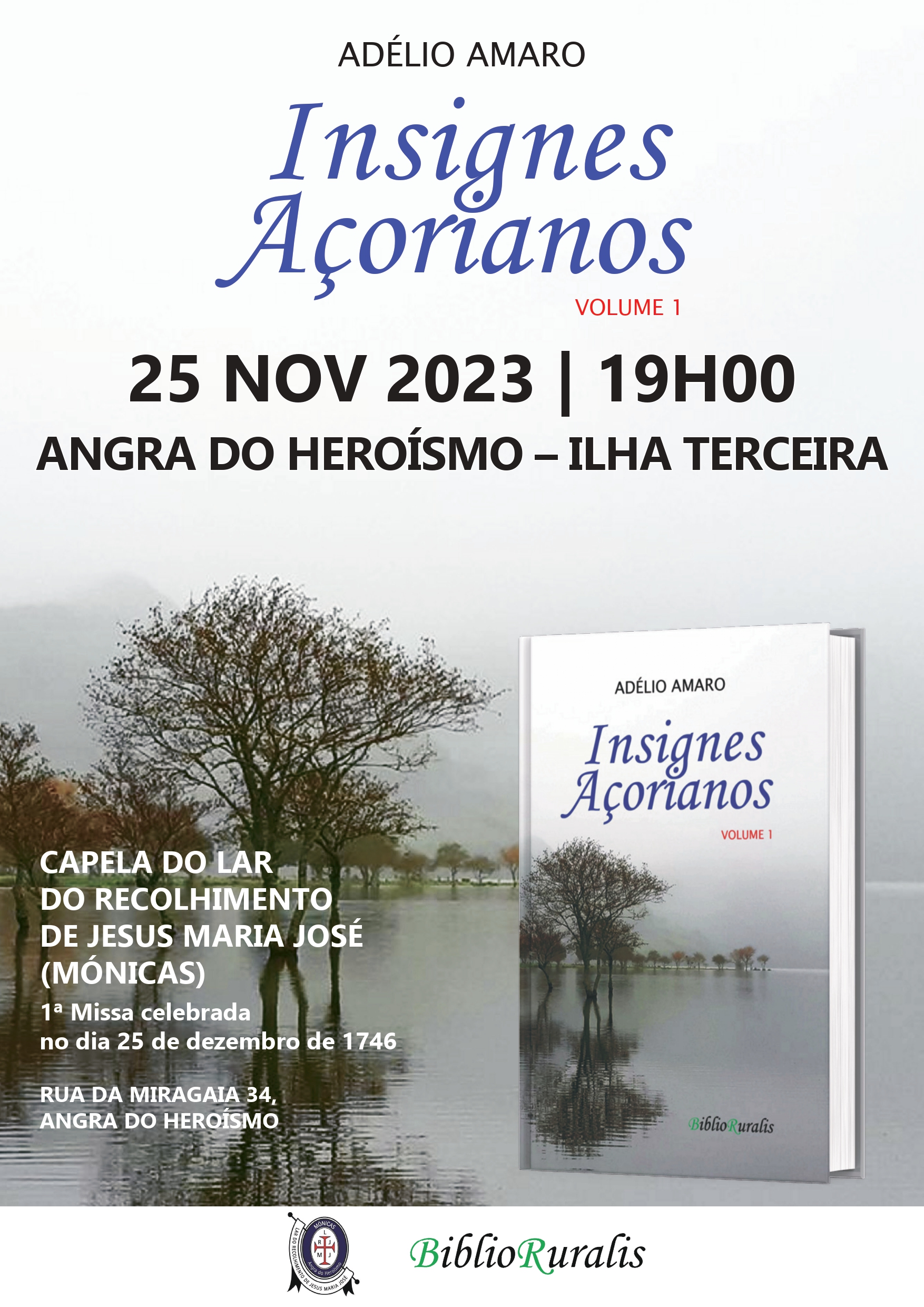 O escritor português Adélio Amaro vai voltar a apresentar o primeiro volume do livro “Insignes Açorianos” nos Açores. Depois de ter estado em Ponta Delgada, em setembro, a obra chegará agora ao público da ilha Terceira. A Capela do Lar de Recolhimento de Jesus Maria José (Mónicas), localizado na Rua da Miragaia 34, em Angra do Heroísmo, na Terceira, vai ser palco desta nova apresentação no dia 25 de novembro, pelas 19 horas. Alberto Gonçalves é o responsável pela apresentação.
