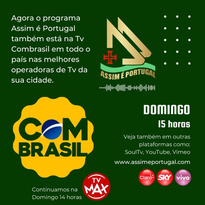 O programa “Assim é Portugal”, onde pode acompanhar o quadro “Ponto a Ponto”, produzido pela Agência Incomparáveis, com temas, desde Portugal, que conectam a comunidade lusófona, ampliou os seus canais de divulgação. Além de ser exibido na TV Max, do Rio de Janeiro, nos canais 25 e 525 da Claro Net, agora tem a sua área de cobertura ampliada através da TV Combrasil, disponível nas principais operadoras das cidades brasileiras, como Vivo, Sky e Claro Satélite.