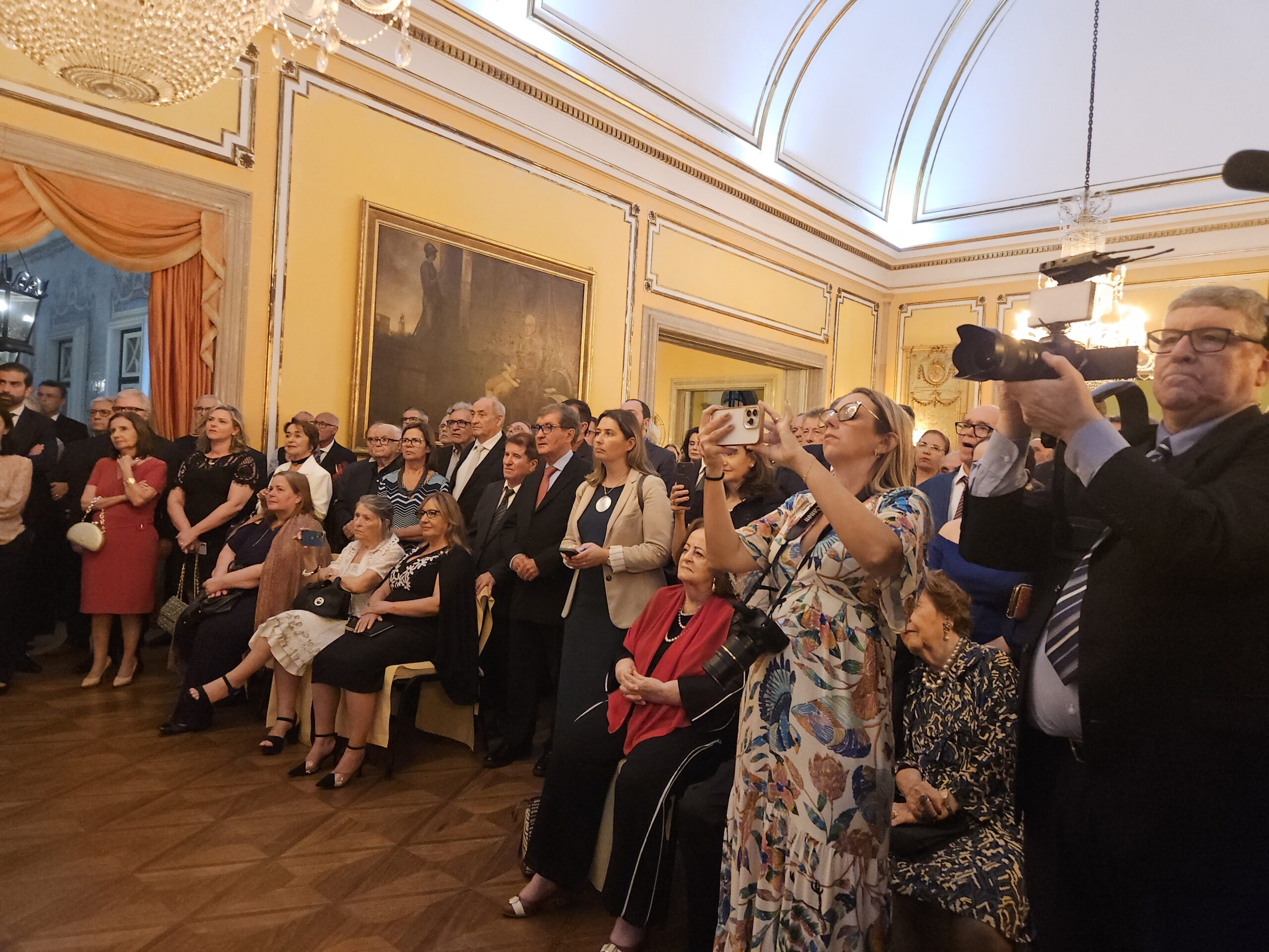 “É muito raro e valioso encontrar tantos traços da nossa identidade e tantas referências da nossa caminhada e presença no mundo. Uma nação inovadora, corajosa e talentosa. Muitos parabéns, caro Francisco, em homenagem a todos que preservam aqui o ser português”, agradeceu o primeiro-ministro, que foi agraciado pelo Real Gabinete com uma medalha comemorativa dos 500 anos do nascimento de Camões e que retribuiu com as obras completas do ensaísta Eduardo Lourenço, uma edição da Fundação Gulbenkian.
