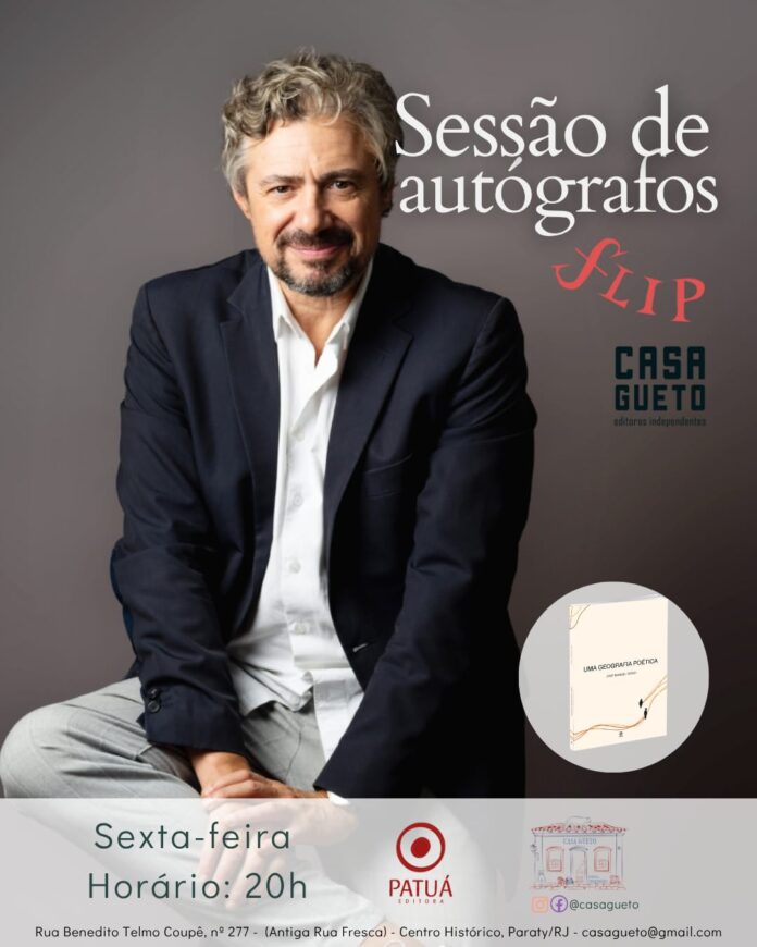 O escritor português José-Manuel Diogo participa dia 1 de agosto, às 20h, numa sessão de autógrafos integrada na programação da Festa Literária Internacional de Paraty (Flip), no espaço Casa Gueto, no centro histórico da cidade fluminense. O encontro marca o lançamento no Brasil do seu mais recente livro, “Uma Geografia Poética”, editado pela Patuá. Festa Literária Internacional de Paraty celebra a sua 23ª edição de 30 de julho a 3 de agosto.