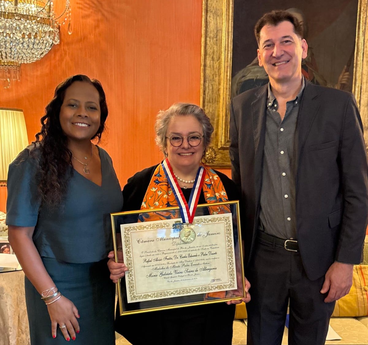 A Embaixadora Maria Gabriela Vieira Soares Albergaria, atual Cônsul-Geral de Portugal no Rio de Janeiro, foi homenageada com o Conjunto de Medalhas de Mérito Pedro Ernesto, distinção máxima atribuída pela Câmara Municipal do Rio de Janeiro. A cerimónia decorreu no Palácio de São Clemente, residência oficial da cônsul-geral, no dia 27 de agosto, e contou com a presença de familiares da diplomata, autoridades locais, representantes da comunidade luso-brasileira e personalidades políticas.