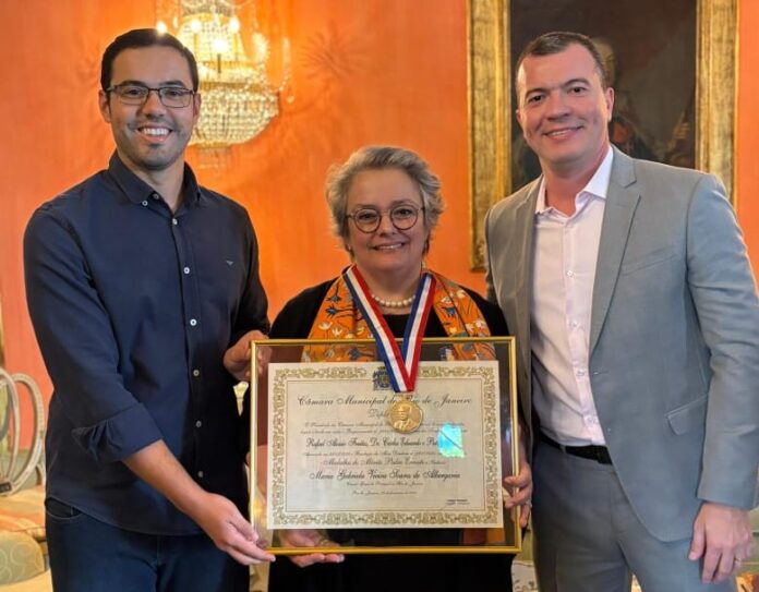 “O Rio de Janeiro é um espaço que acolhe, que inspira e que transforma. Ser reconhecida com a mais alta distinção municipal significa que passo a fazer parte dessa identidade e dessa energia que pulsa em cada canto da cidade. Agradeço aos vereadores Rafael Aloísio de Freitas e Pedro Duarte, autores da proposta de agraciamento, por acreditarem e valorizarem o meu trabalho, mas não posso deixar também uma palavra de gratidão a todos quantos têm caminhado comigo ao longo destes quase quatro anos, apoiando-me, incentivando-me e inspirando-me. Mais do que uma honra, a medalha Pedro Ernesto representa, para mim, um chamamento a um ainda maior compromisso e a um maior empenho. É, seguramente, uma inspiração para seguir trabalhando por um futuro mais justo, solidário e humano no Brasil e em Portugal. No momento tão significativo de imposição da medalha, fiz questão de me rodear de membros da comunidade portuguesa agraciados com idêntica honraria, neles me unindo na alegria de um contributo coletivo para toda a comunidade portuguesa e para a sociedade carioca”, finalizou Gabriela Vieira Soares Albergaria. ■