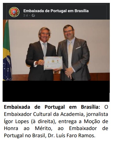 “Agradeço reconhecido, e reafirmo a minha total disponibilidade para contribuir, na medida das nossas possibilidades, para que essa rede tão importante da presença de Portugal no Brasil constitua um elemento fundamental na promoção e visibilidade do nosso país. Bem-haja”, afirmou o embaixador português no Brasil.