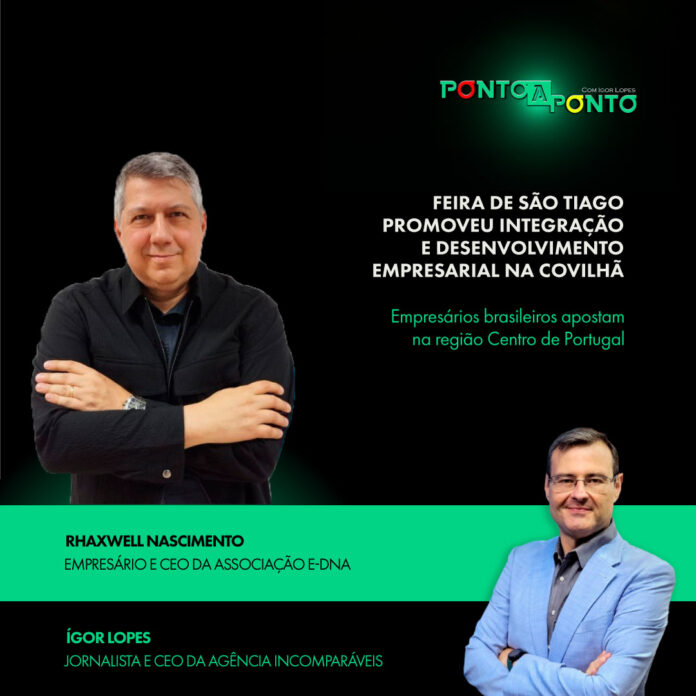 O Ponto a Ponto desta semana mostra a primeira parte de uma reportagem que a nossa equipe realizou na Feira de São Tiago, na Covilhã, que promoveu integração e desenvolvimento empresarial na região, segundo os seus organizadores. O evento atraiu empresários brasileiros que apostam na região Centro de Portugal. Um dos nossos entrevistados foi Rhaxwell Nascimento, empresário e CEO da Associação E-DNA, além da empresária Sofia Lourenço. Veja mais na reportagem em vídeo.  ■