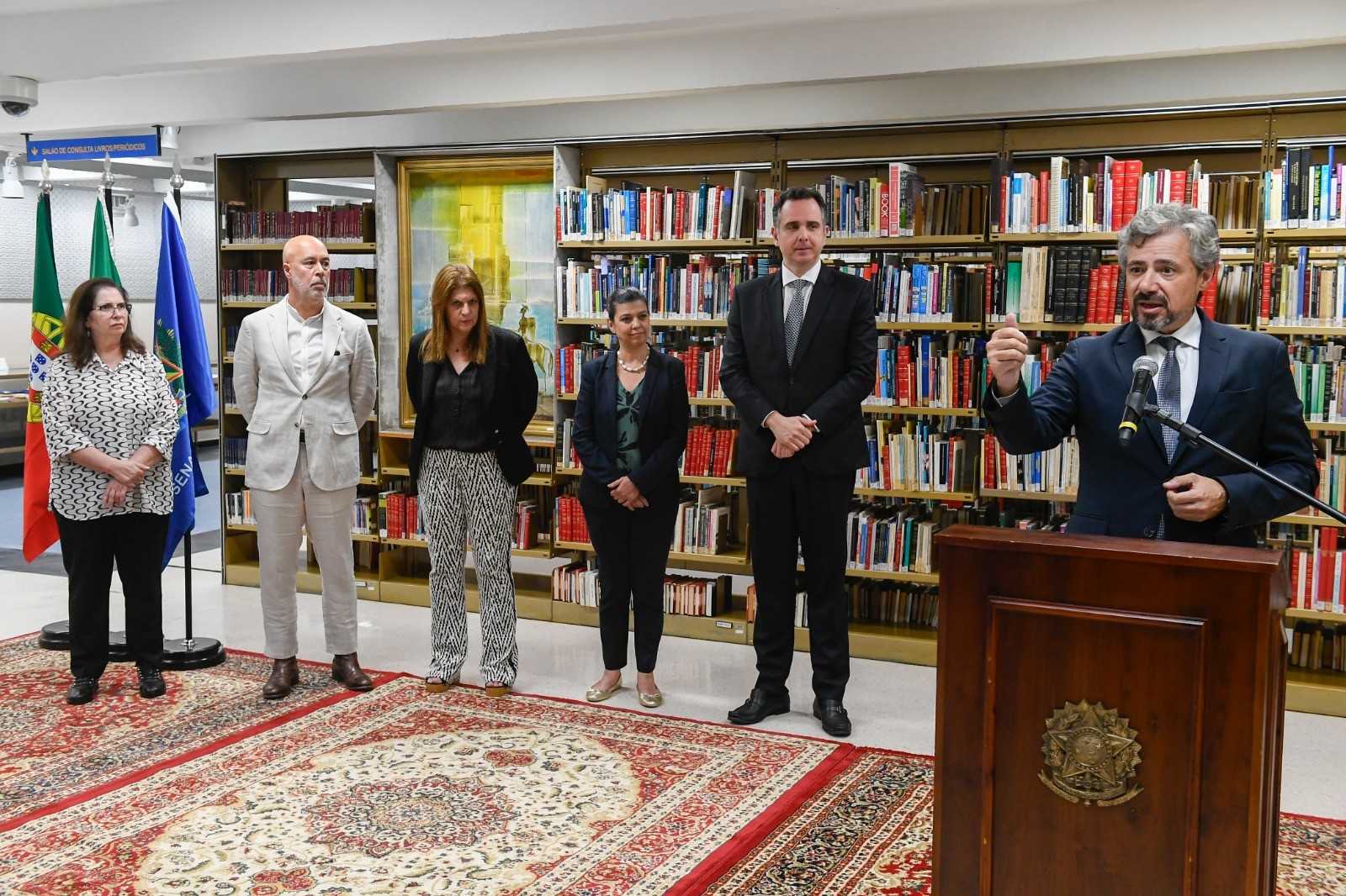 Rodrigo Pacheco, presidente do Senado Federal do Brasil, acompanhou a cerimónia de inauguração da exposição, ao lado de outros nomes de vulto entre Brasil e Portugal