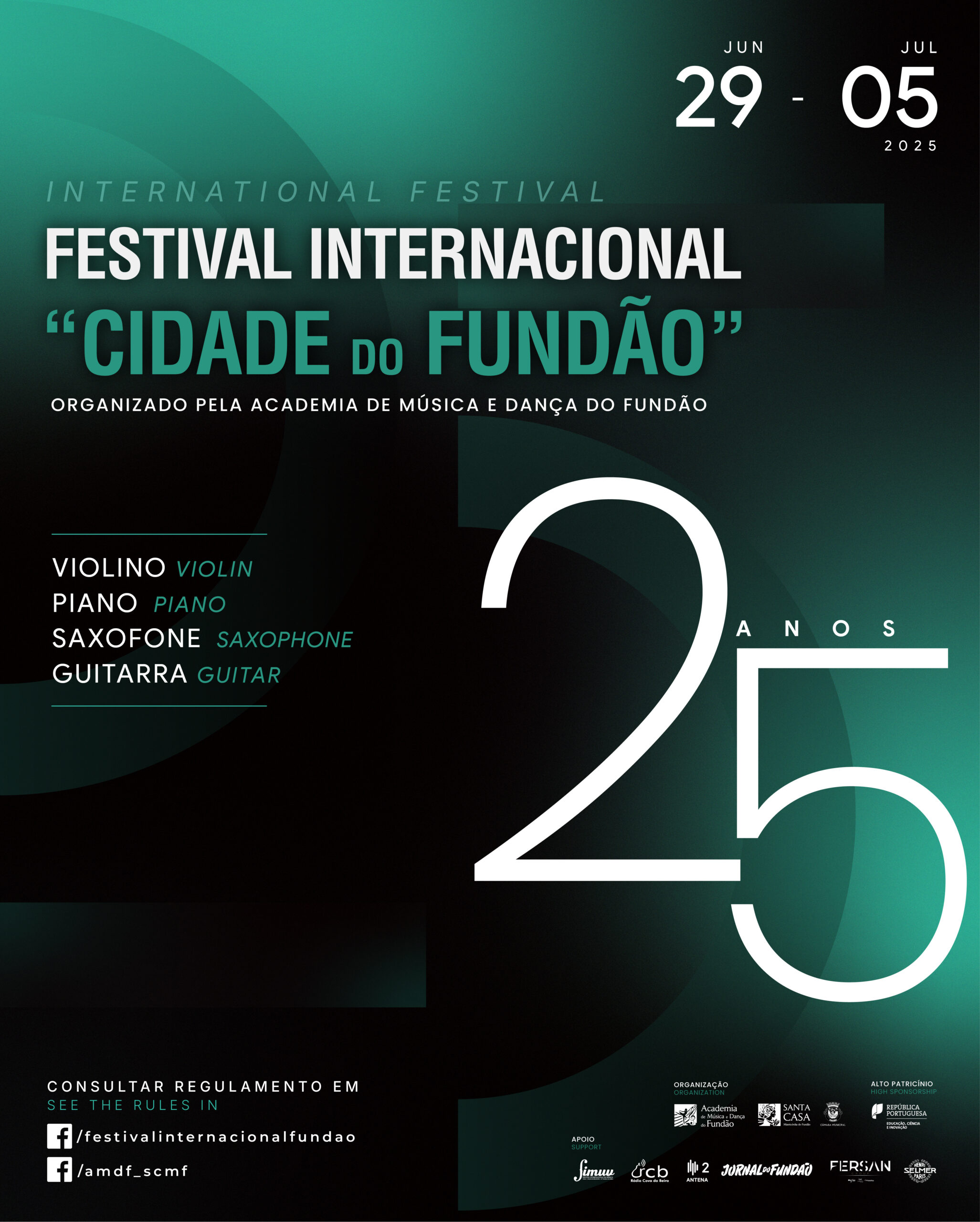 Arranca este domingo, 29 de junho, a 25.ª edição do Festival Internacional “Cidade do Fundão”, um dos mais relevantes encontros musicais de verão em Portugal. Organizado pela Academia de Música e Dança do Fundão, o evento decorre até 5 de julho e inclui, como destaque, o Concurso Internacional Cidade do Fundão, que este ano conta com mais de 100 participantes nas categorias de piano, guitarra, violino e saxofone.