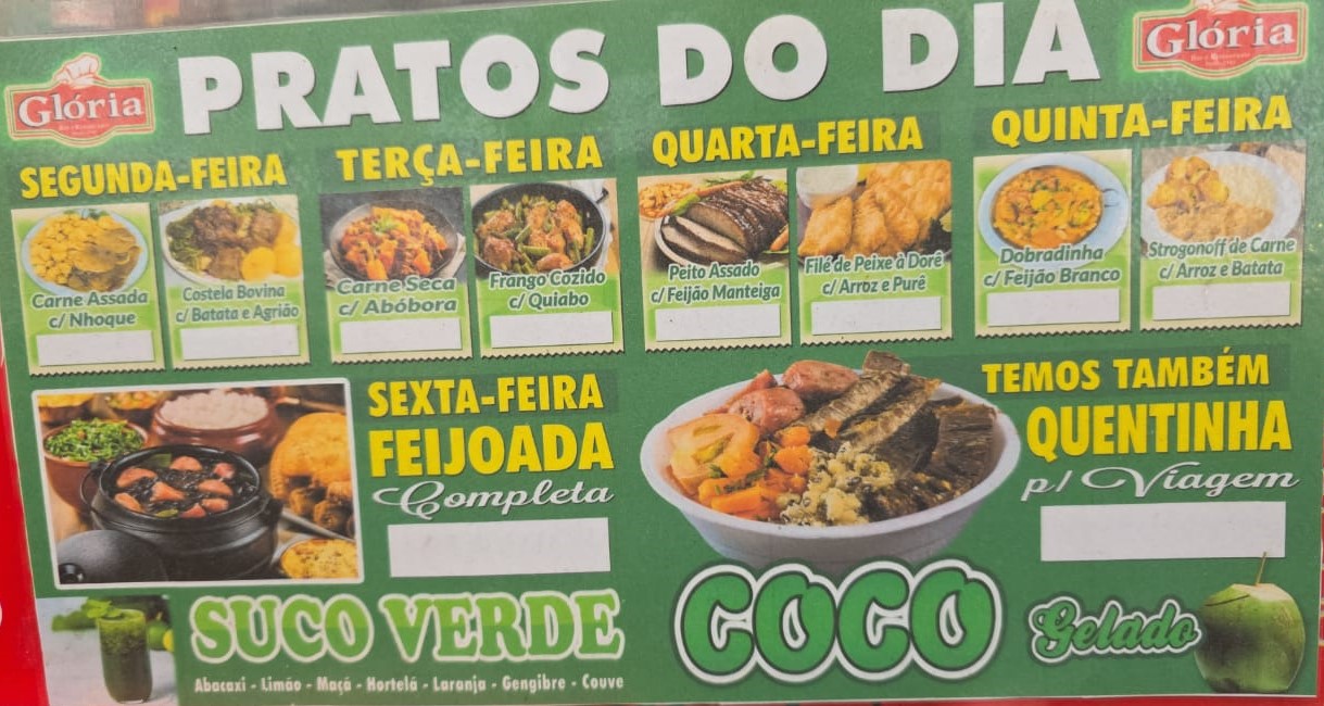Ao entrar no estabelecimento, o cliente já sabe o que vai apreciar sobre a mesa, pois a placa com os “Pratos do Dia” anuncia, para o gosto de cada freguês, de segunda a sexta-feira, diversos tipos de refeição.