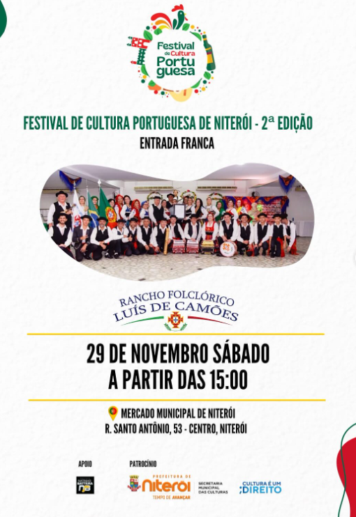 O festival decorre na Rua Santo António, 53, no Mercado Municipal de Niterói, tem entrada gratuita e promete uma tarde de celebrações da cultura e das tradições lusas. ■