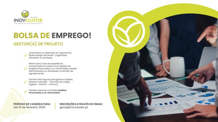 A Associação do Cluster Agro-industrial do Centro (InovCluster) abriu vagas para profissionais de Gestor de Projetos com experiência profissional em Agronomia, Biotecnologia Alimentar e Engenharia Alimentar.