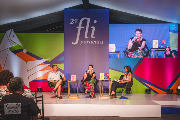 Na noite desta quinta-feira, dia 29/08, no âmbito do Festival Literário Internacional de Paracatu – Fliparacatu, o Auditório Afonso Arinos recebeu as escritoras Juliana Monteiro e Ruth Manus e o escritor Jamil Chade. As duas convidadas têm livros publicados em autoria com o companheiro de mesa, Jamil: “Brasil, com amor”, parceria com Juliana, e “10 histórias para tentar entender um mundo caótico”, parceria com Ruth. Segundo Jamil, os dois livros foram escritos em momentos diferentes e o que divide esses dois projetos é a vacina contra a Covid-19. O autor, assim, refletiu como o mundo não se transformou, para melhor, a partir da pandemia — desejo compartilhado por muitos a partir de uma experiência tão dramática. “A nossa percepção era de que estaríamos conscientes da nossa vulnerabilidade após a pandemia, mas não foi o que aconteceu”.