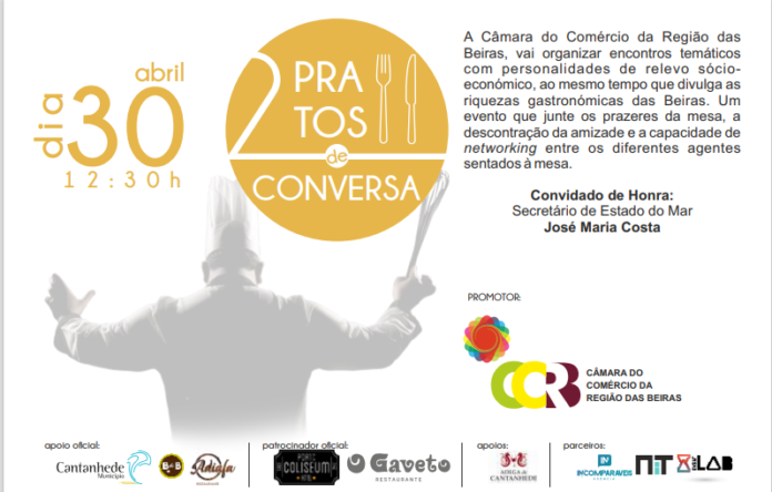 O Secretário de Estado do Mar, José Maria Costa, é o convidado da primeira edição da iniciativa “Dois Pratos de Conversa com…” promovida pela Câmara do Comércio da Região das Beiras (CCRB). Será a 30 de abril e o almoço terá lugar no Restaurante Adiafa do Hotel BB de Cantanhede.