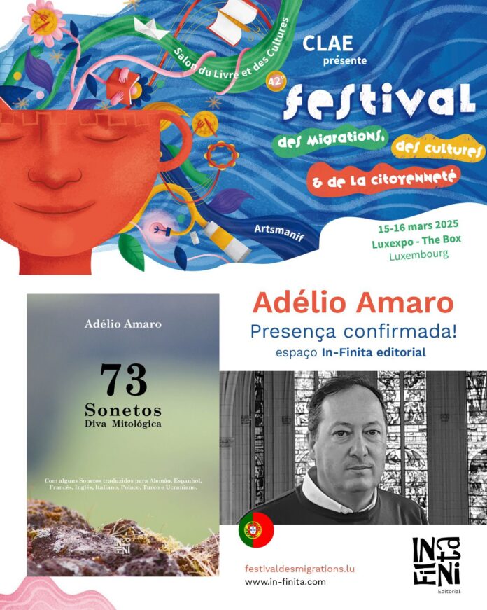 Entre os dias 15 e 16 de março decorre no Luxemburgo a 42.ª edição do “Festival des Migrations, de la Culture et de la Citoyenneté”, nas instalações da LuxExpo The Box. O escritor português, Adélio Amaro, é um dos convidados, através da In-Finita Editorial, com o mais recente livro de sonetos, intitulado “73 Sonetos Diva Mitológica”.