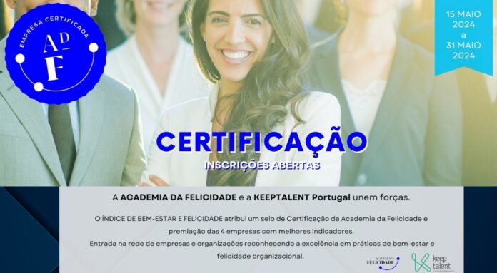 Foi apresentado no último dia 15, numa sessão on-line desde Portugal o “Índice de Bem-Estar e Felicidade” que promove a atribuição do selo de “Certificação da Academia da Felicidade”, que reconhece as empresas e organizações que demonstram “excelência em práticas de bem-estar e felicidade organizacional”. Uma iniciativa que surge da parceria entre a Academia da Felicidade, com sede em Braga, e a KEEPTALENT Portugal, localizada em Lisboa. As candidaturas estão já abertas, são gratuitas e o prazo para as inscrições termina no dia 31 de maio de 2024.