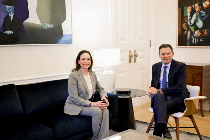 O primeiro-ministro português, Luís Montenegro, recebeu esta terça-feira, 22 de abril, na residência oficial em São Bento, em Lisboa, a vencedora do Prémio Nobel da Paz 2025, María Corina Machado, num encontro centrado na situação política na Venezuela, com foco na realização de eleições livres e na transição democrática, bem como na situação da comunidade portuguesa e lusovenezuelana residente no país.