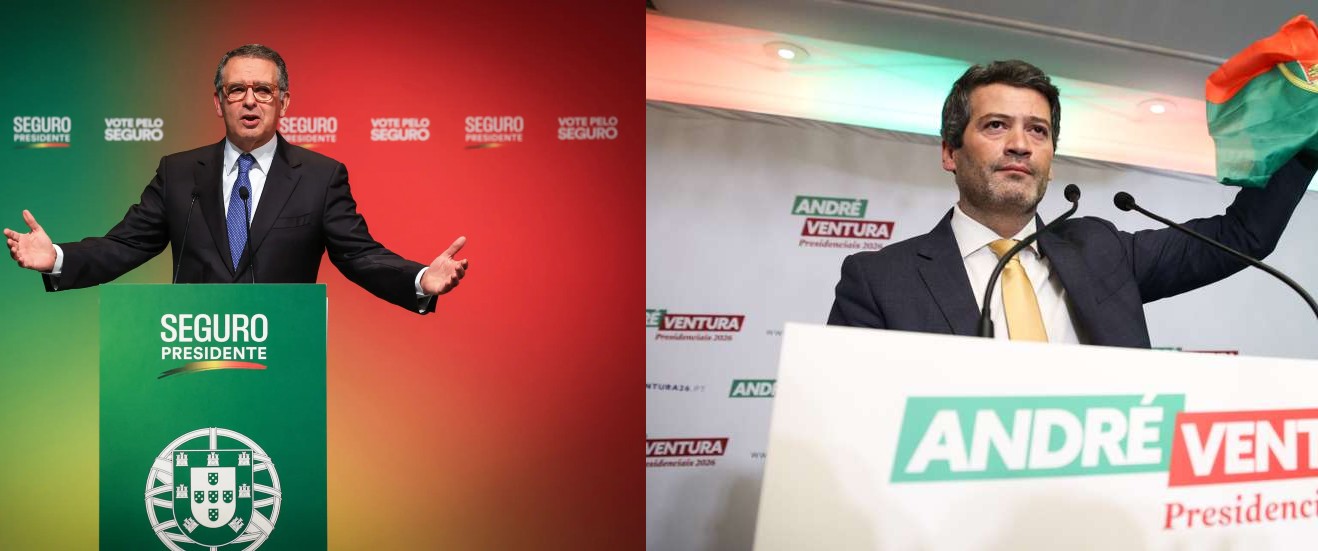 António José Seguro e André Ventura vão disputar a segunda volta das presidenciais portuguesas, a 8 de fevereiro. Foto: divulgação