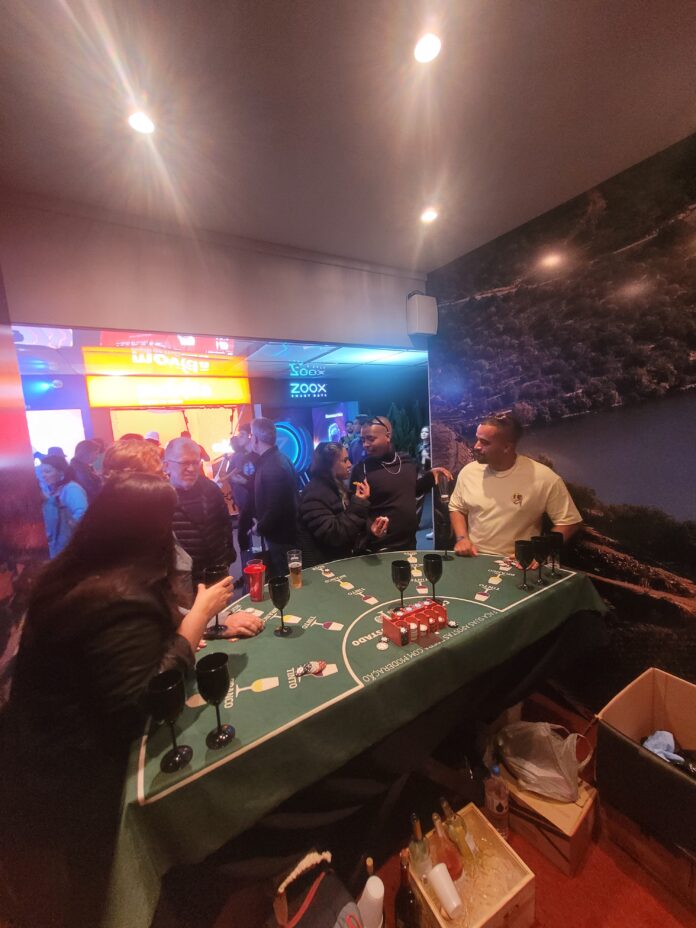 Já na área VIP do evento, existem diversas marcas presentes. Uma das propostas para os convidados que circulam pelo espaço é um jogo com fichas de diferentes cores e pontuações, onde o cliente degusta duas opções de vinhos portugueses numa taça preta e precisa apostar essas mesmas fichas tentando adivinhar se é um vinho tinto, branco ou rosé.