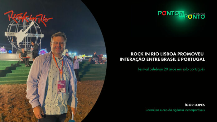 O Ponto a Ponto desta semana mostra uma reportagem especial sobre a edição deste ano do Rock In Rio Lisboa, que celebrou 20 anos em solo português. Um festival de bandeira brasileira que deu a conhecer marcas, artistas e nomes que operam em Portugal. Sem falar na nostalgia que os brasileiros sentem ao visitar um dos maiores festivais de música do mundo que nasceu no Brasil. Veja mais na reportagem em vídeo. ■