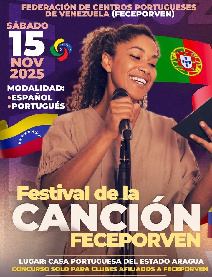 No sábado, 15 de novembro deste ano de 2025, será celebrada a XV edição do Festival Nacional da Canção da Federação dos Centros Portugueses da Venezuela, que será realizado nas instalações da Casa Portuguesa do estado de Aragua, localizada na cidade de Turmero, cuja população faz fronteira com a cidade de Maracay, que fica a 119 km a oeste de Caracas.