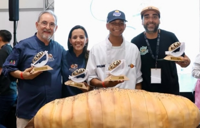A padaría Ángela apresentou “O cachitino”, derivado da combinação entre Cachito e Diamantino Martins, proprietário da padaria. É um pãozinho de massa tradicional, muito bem enrolado, recheado com mortadela de tapara e pepino, tudo em fatias finas, e mostarda, coroado com uma compota de pimentão vermelho e pimenta que lhe conferia um contraste interessante de picante e doçura ao recheio. Harmonizaram-no com um espumante branco frio que realçou os sabores.